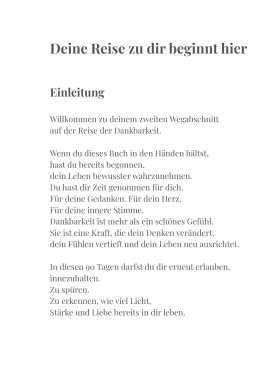 In 90 liebevoll gestalteten Tagen begleitet dich dieses Dankbarkeitstagebuch dabei, deine Gedanken neu auszurichten, deine innere Stimme zu stärken und wieder in Verbindung mit deinem Herzen zu kommen.